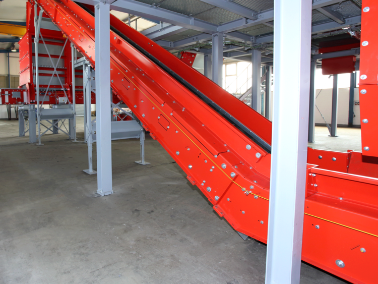 Die Winkel des Knickförderbands werden auf Ihre speziellen Gegebenheiten ausgerichtet bzw. angepasst. Somit kann es für Schüttgüter aller Art eingesetzt werden. Bewährt hat sich das Förderbandsystem z.B. als Abzugsband für Zerkleinerer. Das durchdachte und robuste Rollensystem und das entsprechende Gurtband lassen keine Wünsche offen und transportieren mühelos das Aufgabematerial. Ein zusätzlicher Vorteils des Knick aufwärts ist die Ersparnis einer Übergabestelle und damit die Bauhöhe in einer Anlage.