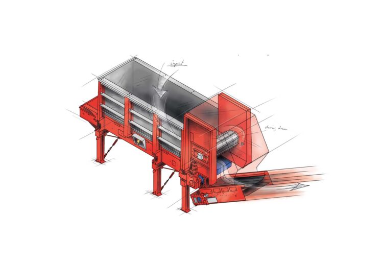 Eine Dosierwalze kann hinzugefügt werden, um eine extrem gleichmäßige Materialzufuhr auch bei voller Bunkerladung zu gewährleisten. Das Dichtungssystem verhindert Materialstaus zwischen Gehäusewand und Trommel.