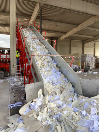 - Zwischenspeicherung des Materials zur weiteren gleichmäßigen Dosierung auf das nächste Förderband.