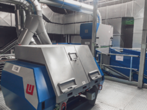 Der Hauptbestandteil dieses Systems ist eine Vakuum-Windsichter-Maschine, die ultraleichte Verunreinigungen aus Materialströmen abscheidet.